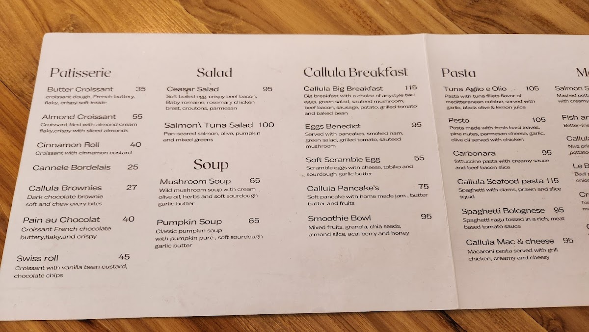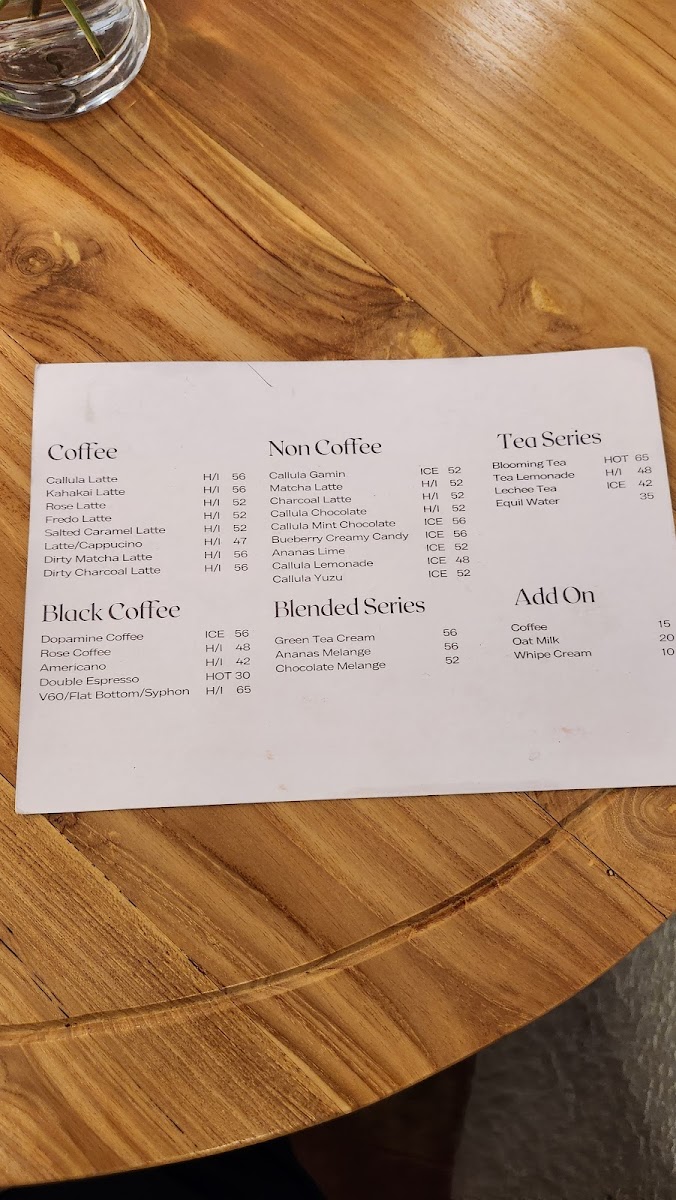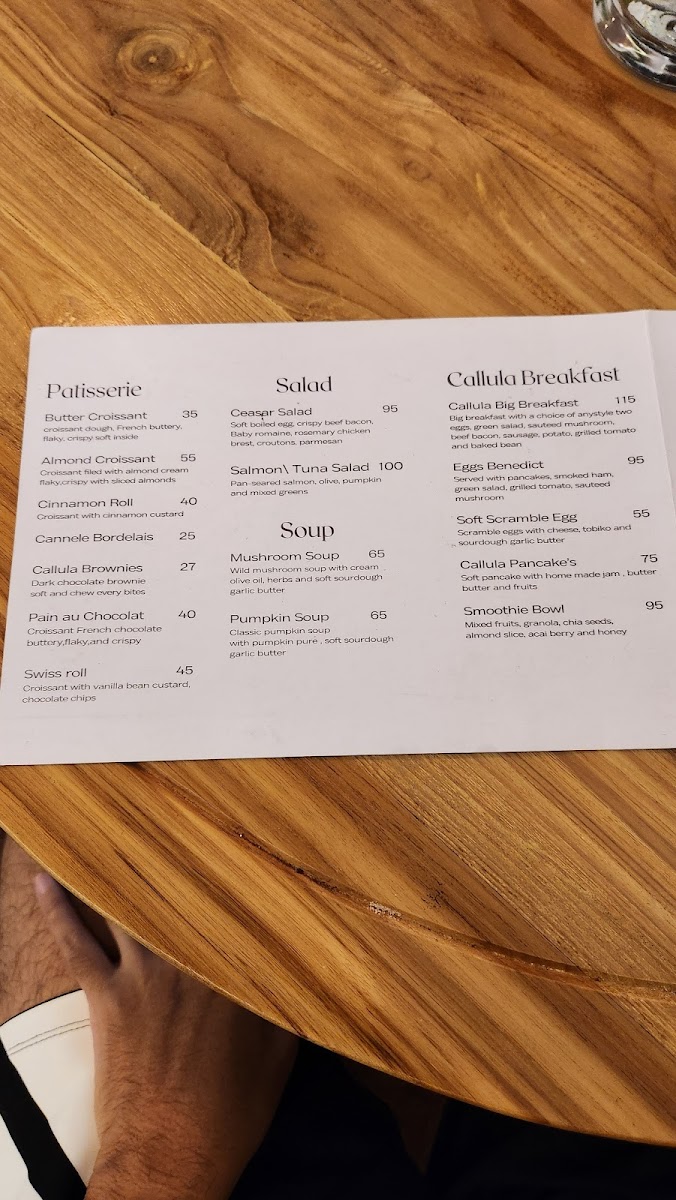 The menu at Callula café and boutique offers a selection of coffee and beverages alongside light food options suitable for coffee breaks and casual dining. Visitors can expect a focus on quality coffee prepared with specialty equipment and beans sourced from local roasters. The food offerings complement the beverage selection and include items such as baked goods and light snacks.